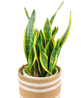 A dwarf variety of the famed snake plant family, the Sansevieria Golden Hahnii sports beautiful variegated leaves in grey green with dark green bands and golden yellow margins. It is a low maintenance plant that is hard.
