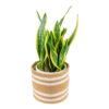 A dwarf variety of the famed snake plant family, the Sansevieria Golden Hahnii sports beautiful variegated leaves in grey green with dark green bands and golden yellow margins. It is a low maintenance plant that is hard.